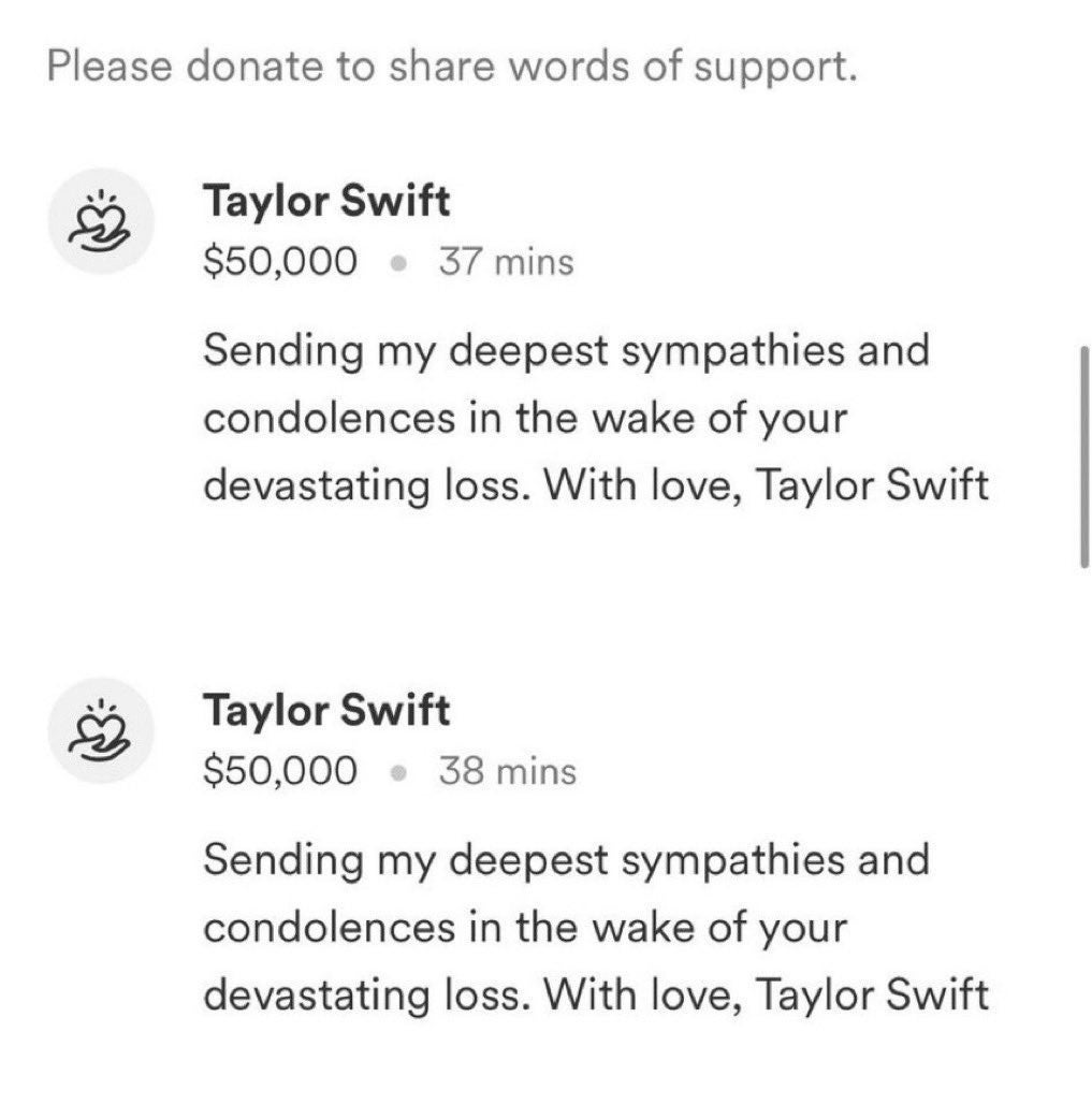 En cuestión de segundo comenzaron a recibir el apoyo de muchas personas, pero fueron dos donaciones sorpresivas las que llamaron su atención, pues la interprete de 'Shake it off' hizo dos aportaciones de 50 mil dólares para la familia de Lisa.